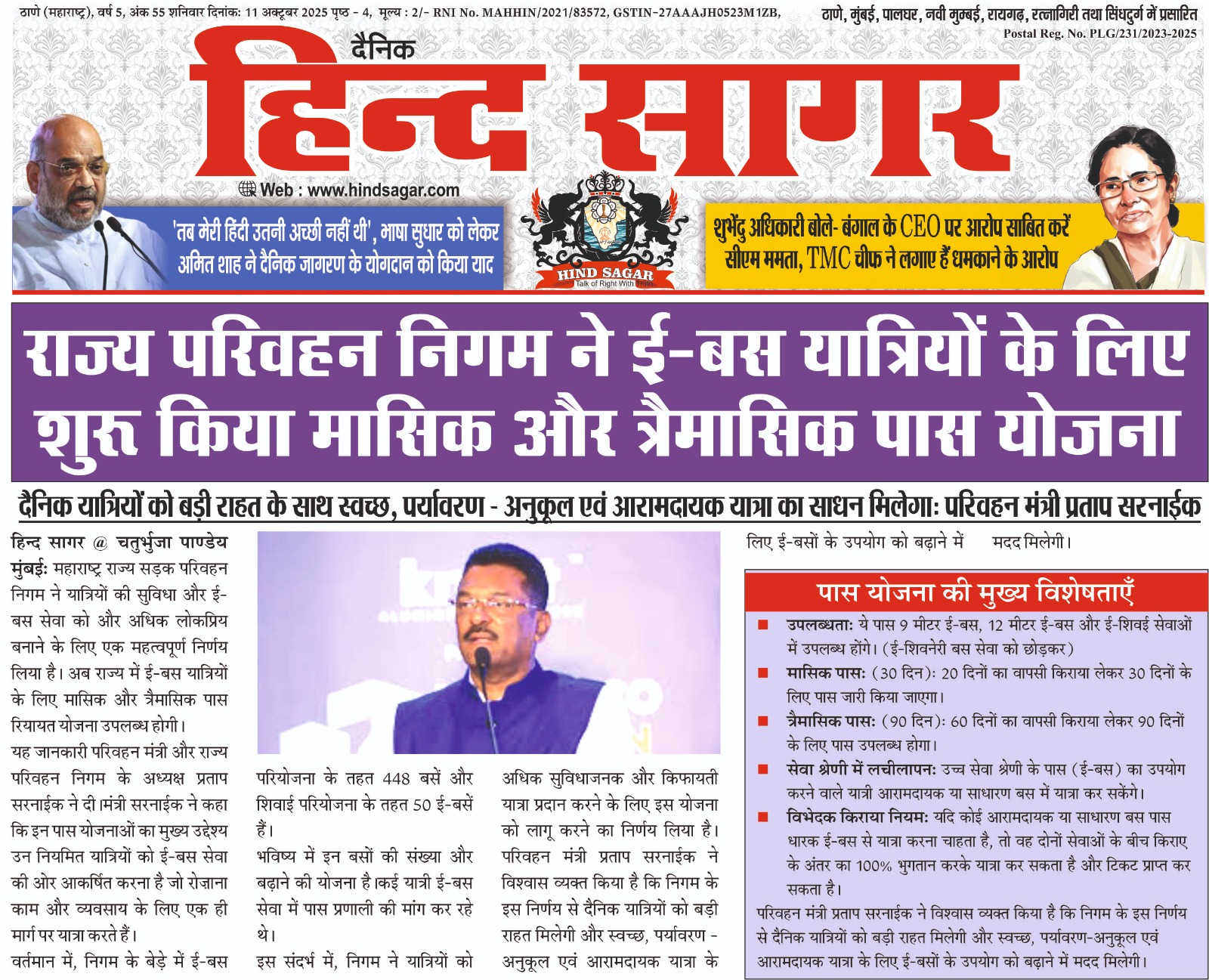 मुंबई: महाराष्ट्र राज्य सड़क परिवहन निगम ने यात्रियों की सुविधा और ई-बस सेवा को और अधिक लोकप्रिय बनाने के लिए एक महत्वपूर्ण निर्णय लिया है। अब राज्य में ई-बस यात्रियों के लिए मासिक और त्रैमासिक पास रियायत योजना उपलब्ध होगी। यह जानकारी परिवहन मंत्री और राज्य परिवहन निगम के अध्यक्ष प्रताप सरनाईक ने दी।